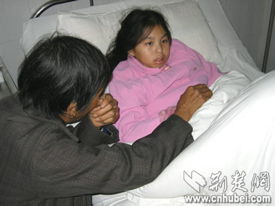 在縣人民醫(yī)院內(nèi)三科9病房里,潔白的病床上躺著一個(gè)面色蒼白、嘴唇發(fā)烏的小姑娘,她就是楊青。在楊青艱難地望過來(lái)的時(shí)候,記者的心不禁打了個(gè)顫:大眼睛沒有一絲神采!記者反復(fù)醞釀的問候語(yǔ)哽在喉中。楊青的父母、奶奶、姑媽,卻忍不住悲傷,淚如雨下!皸钋,你痛不痛?”“痛……”楊青張了張嘴,聲音弱得幾乎聽不見。“哪里痛,告訴阿姨好嗎?”“全身都痛!睏钋囝澏吨鲁鲞@4個(gè)字后,不再開口說話。