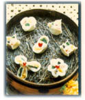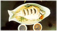 Wuchang Fish, known as "Tuantoufang' ,is a kind of Bian Flat Fish, originally produced in Liangzhi Lake of Ezhou City, has been transplanted and fed around China, With delicate meat and plenty of fat, it can be cooked into many kinds of  courses by different ways Of  which steam in clear soup has the best flavor. Usually, a fish of 1 kilogram or so is chosen for steam in clear soup, seasoned by ham sausage, winter mushroom, winter bamboo shoots and chicken soup, etc. After being steamed ,colorful sprout silks such as red , yellow and green, are embellished on fish, It looks as if fish is colorful. If taste it, you will feel delicate, delicious, fresh and fragrant.  Wuchangjulou Restaurant is famous for being good at cooking Wuchang Fish and very particular about color,scent, flavor ,shape and holders of dishes.