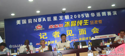 荊楚網消息(記者吳彬彬)美國前NBA巨星王朝2005年訪華巡演記者見面會于今天下午3:20在武漢弘毅酒店召開。