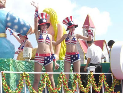 今天上午在新海廣場舉行的第六屆大連狂歡節(jié),更是使歡樂的海洋里掀起了歡樂的海潮。來自國內(nèi)外的24支狂歡巡游隊伍,以花團錦簇的民族服裝和極度夸張的藝術(shù)手法,演繹了航天、花神、特洛伊木馬、梁山伯與祝英臺、孔雀仙子、海底動物、蝴蝶服飾、阿凡提、醉酒、美人魚、回娘家、貓友、豪華游覽馬車、日月潭傳說、堂吉訶德、木偶奇遇、狐假虎威、寶蓮燈、海娃與王子、小櫻丸子、尼爾斯騎鵝記、阿里巴巴、輪滑表演等國內(nèi)外著名童話,電影故事等。最為耀眼的是以音樂劇《貓》的扮相出場的表演隊伍,他們獨特的表演和造型贏得了在場觀眾最多的歡呼聲。狂歡的服裝藝術(shù)巡游,吸引了數(shù)萬國內(nèi)外游客和當(dāng)?shù)孛癖姷挠^賞。