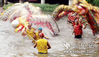 圖為水上舞龍表演