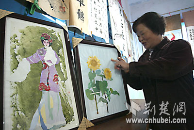 12年前,50歲的趙秀芬退休了。閑暇下來,她發(fā)現(xiàn)家里有很多舊掛歷,雖已過期,但棄之可惜。一天,她找出一張舊掛歷紙,三下兩下貼出一個仕女圖,居然效果不錯。之后,她根據(jù)畫面的顏色、樣子進(jìn)行歸類,然后拼成圖畫。