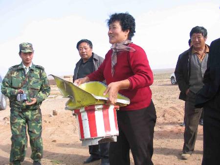 記者在搜索現(xiàn)場看到,從四面八方趕來的牧民群眾個(gè)個(gè)都有所獲。“哈呀,人們常說天上掉餡餅,這不應(yīng)驗(yàn)了?”牧民張金虎指著自己撿到的一堆殘骸,興奮地開著玩笑。牧民烏云還向記者炫耀,她和丈夫?yàn)趿裉焯匾馄鹆藗(gè)大早,在家焚香默默祝愿神舟六號(hào)飛船試驗(yàn)成功,所以今天他們撿到的殘骸最多,能裝滿滿一車。