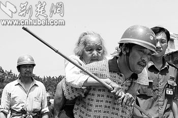 當(dāng)?shù)厝罕姷玫绞枭ⅲ?0歲的王小英老人被轉(zhuǎn)移到安全地帶。