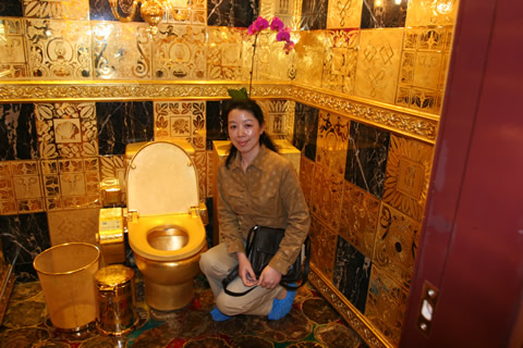 在2002年版的《吉尼斯世界紀錄》上有著這樣一條記錄:“用錢沖洗――世界上最昂貴的衛(wèi)生間由珠寶商林世榮制造,在他的中國香港商店售價240萬英鎊。它完全由金子和昂貴的珠寶制成。抽水馬桶、洗臉臺、刷子、衛(wèi)生紙盒、鏡框、墻上架設的吊燈、墻上的瓷磚和門全部都由24K黃金構成! “這里有一點寫得不對,我的金廁所決不出售,我還要用它來專門注冊一個品牌,成為我們企業(yè)的象征。”林世榮在接受記者采訪時,詳細地解釋了自己對“金廁所”的感情。 現(xiàn)任香港恒豐金業(yè)科技集團主席的林世榮說:“整個金廁所都是由我親自設計、監(jiān)督制造的,我甚至在工地呆過整整三天三夜沒有出來,可以說是傾注了極大的心血。很多人可能不了解我為什么會用這么多黃金來建造一個廁所,其實我不是為了炫耀,也不是喜歡奢侈浪費,我是在完成一個心愿。把土變成金了不起,把金變成土同樣了不起。”