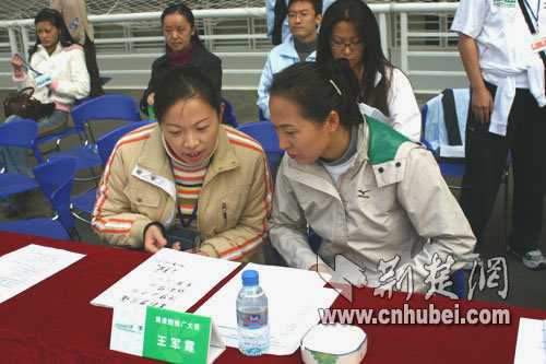 在和王軍霞的交談中得知這是她第二次來武漢,她說她對(duì)武漢的印象不錯(cuò),特別是群眾性的健身活動(dòng)。這次在現(xiàn)場(chǎng)看到有這么多的市民自愿來參加健康跑,她覺得很高興和欣慰,因?yàn)樗F(xiàn)在的身份就是健康跑的推廣大使,希望有更多的人參與在這項(xiàng)方便易行的活動(dòng)中去,增加體質(zhì),為國為民為自己。當(dāng)我告訴她是因?yàn)樗牡絹聿盼诉@么多的人來參加活動(dòng)時(shí),她覺得很驚喜!叭绻@樣能吸引更多的人,我想我的付出是值得的!”