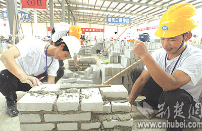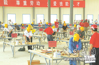 昨日,前往湖北城市建設職業(yè)技術學院藏龍島校區(qū)參賽的,除了精細木工外,還有砌筑工、鋼筋工和鑲貼工等工種,共114名選手。他們是從全省117萬建筑工人中層層選拔出來的。