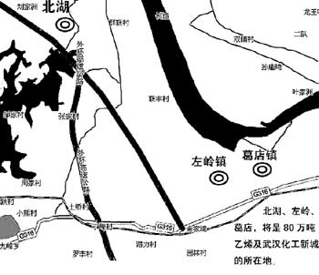 長(zhǎng)江從天興洲起,向下游劃出一道弧線,沿線布有洪山區(qū)建設(shè)鄉(xiāng)、花山鎮(zhèn)和左嶺鎮(zhèn),這里將建起一座化工新城。昨晚,記者由南向北走訪了這些鄉(xiāng)鎮(zhèn)。