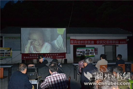 當(dāng)晚,在電影開始前播放了由陽光凱迪新能源集團(tuán)提供的秸桿回收與利用宣傳片,讓農(nóng)民朋友了解產(chǎn)業(yè)開發(fā)“變廢為寶”帶來的收益,播放了由赤壁市普法工作辦公室拍攝制作的《留守兒童》公益廣告片和邵陽花鼓戲《兒大女大》,現(xiàn)場還發(fā)放了由省扶貧辦編印的《扶貧到戶,畫說政策》宣傳手冊、秸桿回收利用好處多等資料,讓廣大農(nóng)民群眾進(jìn)一步了解黨和政府的扶貧政策,真正享受到政策的好處。電影下鄉(xiāng)活動(dòng)猶如一道文化大餐,不僅給群眾送去歡樂,而且還豐富了人民群眾的業(yè)余文化生活。