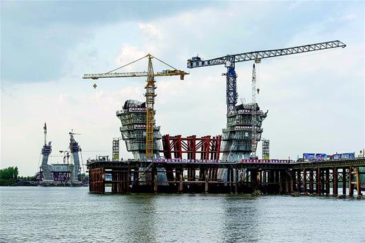 湖北日?qǐng)?bào)訊 8日,嘉魚長(zhǎng)江公路大橋施工現(xiàn)場(chǎng),工程建設(shè)者在主塔激戰(zhàn)正酣。嘉魚長(zhǎng)江大橋是嘉魚縣和洪湖市之間的一座公路斜拉橋,與武漢城市圈環(huán)線高速公路洪湖段和咸寧西段貫通,大橋全長(zhǎng)4.7公里,按雙向六車道高速公路標(biāo)準(zhǔn)建設(shè),預(yù)計(jì)2019年通車。目前,橋樁基、承臺(tái)全部施工完畢。
