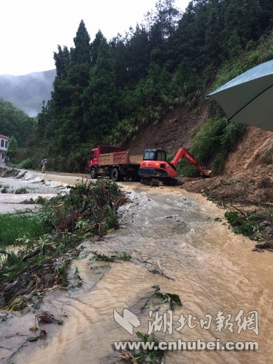 湖北日?qǐng)?bào)網(wǎng)訊(全媒體記者張愛(ài)虎、通訊員汪淑琴、陳迪新)7月1日上午9點(diǎn),崇陽(yáng)縣港口鄉(xiāng)北山村五組發(fā)生山體滑坡,2000多立方米的泥沙樹(shù)木,從半山腰傾瀉而下,瞬間堵塞河道,沖向農(nóng)田,十幾畝農(nóng)田受損,幸無(wú)人員傷亡。駐北山村的殘聯(lián)農(nóng)村工作隊(duì)正在該組查看汛情,見(jiàn)狀立刻疏散群眾。崇陽(yáng)縣委縣政府高度重視,馬上轉(zhuǎn)移群眾,確保生命安全,省地質(zhì)專(zhuān)家、鄉(xiāng)政府干部和設(shè)備馬不停蹄趕到現(xiàn)場(chǎng)搶險(xiǎn),疏散群眾、掛繩隔離,豎立地質(zhì)警示標(biāo)志,用挖機(jī)清理路面塌陷的石頭。