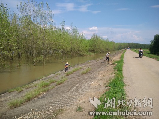 在接興村附近堤段,48歲的村民駱傳見(jiàn)正在為自家的責(zé)任堤段除草。他介紹,按照防汛要求,必須將雜草清理干凈,方便巡查。說(shuō)話(huà)間,他接到電話(huà)通知,明天參加巡堤值守。