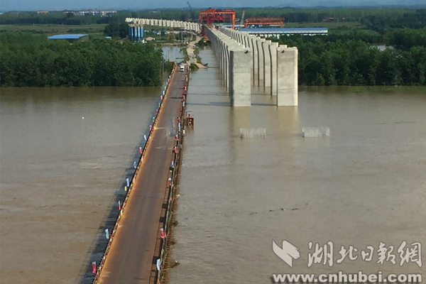 從6月30日至7月5日,嘉魚長(zhǎng)江大橋水位監(jiān)測(cè)顯示,6天漲了近2米。7月6日晚8時(shí),嘉魚段水位達(dá)30.78米,超警戒0.78米。嘉魚長(zhǎng)江大橋施工方負(fù)責(zé)人介紹,項(xiàng)目建設(shè)指揮部已經(jīng)啟動(dòng)防汛一級(jí)應(yīng)急響應(yīng),并停止夜間施工。