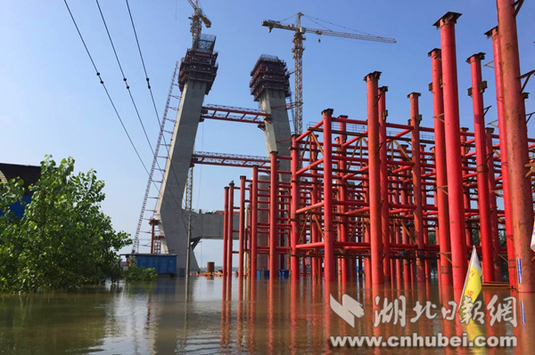 湖北日?qǐng)?bào)網(wǎng)訊(全媒體記者江萌 通訊員周漓)連日來(lái),受湖南持續(xù)暴雨、三峽水庫(kù)加大下泄流量等因素影響,長(zhǎng)江咸寧段水位持續(xù)超警戒,湖北省重大工程嘉魚長(zhǎng)江大橋項(xiàng)目工地部分區(qū)域被江水淹沒(méi),防汛現(xiàn)場(chǎng)多次出險(xiǎn)。經(jīng)科學(xué)調(diào)度指揮,5日長(zhǎng)江1號(hào)洪峰順利通過(guò)嘉魚。截至6日晚,大橋南北主塔、橋梁預(yù)制廠及數(shù)百個(gè)墩柱均未出現(xiàn)任何損壞。