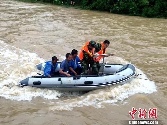 中新網(wǎng)咸寧8月13日電 (朱燕林 官易洲)13日6時(shí)23分,湖北咸寧市崇陽縣消防中隊(duì)接到報(bào)警稱,該縣銅鐘鄉(xiāng)佛嶺村40人因山洪被困山上。接警后,消防官兵攜水面橫行艇、救生拋投器以及大繩等工具前往營(yíng)救被困人員。