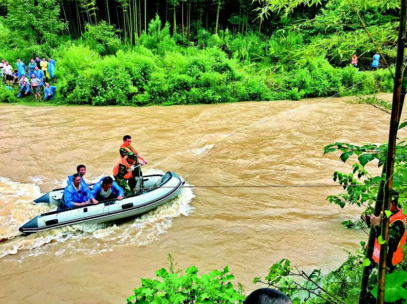 圖為昨日清晨崇陽40人送葬隊伍突遇山洪被困,消防官兵拋繩擺渡安全轉(zhuǎn)移。