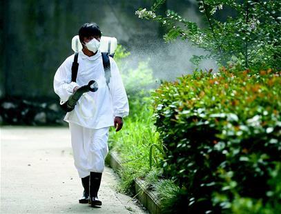湖北日報(bào)訊 昨日,咸寧市咸安區(qū)防疫小分隊(duì)在當(dāng)?shù)叵虒毬疯ば^(qū)進(jìn)行消毒消殺。13日,咸安區(qū)遭暴雨洪水侵襲,洪水退后,衛(wèi)生防疫人員對人員聚居地、廣場草坪、道路、河岸和垃圾桶等噴施消毒殺菌藥品,加強(qiáng)衛(wèi)生防疫。(視界網(wǎng) 吳濤攝)