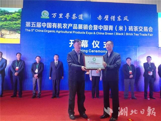 湖北日?qǐng)?bào)網(wǎng)訊(記者江萌、張文龍 通訊員童金?。?日,為期3天的第五屆中國(guó)有機(jī)農(nóng)產(chǎn)品展銷會(huì)暨中國(guó)青(米)磚茶交易會(huì)在赤壁開幕。省人大常委會(huì)副主任王玲參加開幕式。中國(guó)茶葉流通協(xié)會(huì)授予赤壁市“2017年度中國(guó)最美茶鄉(xiāng)”榮譽(yù)稱號(hào)。