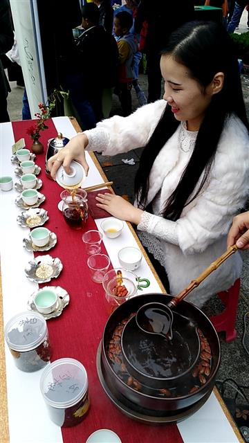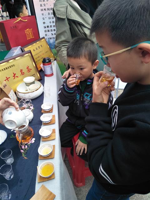 在咸寧茶友會(huì)成員逸思園生態(tài)茶葉展臺(tái)前,茶客絡(luò)繹不絕。大家品嘗瑤山紅茶、桃花尖白茶、泉谷毫峰綠茶等產(chǎn)品,相互交流品茶心得?!扒啻u茶膏,這還是第一次見到?!痹谙虒幐咝聟^(qū)溫泉茗樂堂茶樓展臺(tái)前,品嘗秘制的青磚茶膏后,不少老茶客對(duì)其濃郁的藥香氣和明顯的解酒功效贊不絕口!