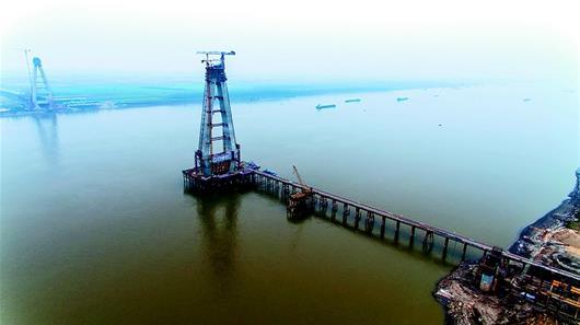 湖北日報(bào)訊 12月4日,正在建設(shè)中的嘉魚長江公路大橋南北主塔分別達(dá)到164米、158米,相當(dāng)于50多層樓高。大橋建設(shè)者開展勞動競賽,力爭在2018年春節(jié)前完成主塔封頂。咸寧市擁有128公里長江岸線卻沒有一座長江大橋,嘉魚長江公路大橋2019年底建成通車后,將終結(jié)咸寧無長江大橋的歷史。 (湖北日報(bào)全媒記者 陳勇 通訊員 周漓 攝)