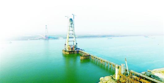 圖為:建設(shè)中的嘉魚長(zhǎng)江大橋