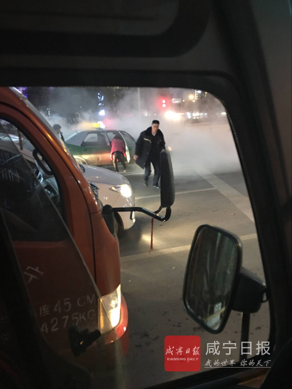 咸寧新聞網(wǎng)訊(香城都市報(bào)記者程統(tǒng) 通訊員李發(fā)揚(yáng))2月11日傍晚,城區(qū)咸寧大道與銀泉大道十字路口,一輛出租車起火。恰巧,一公司班車行經(jīng)此處,駕駛員葛宏斌見(jiàn)狀,立即下車,提著車上的滅火器跑到出租車邊,將火熄滅。
