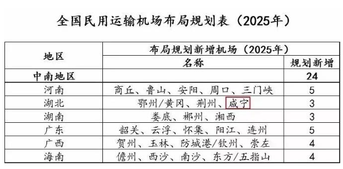 此前發(fā)布的《中國(guó)民用航空發(fā)展第十三個(gè)五年規(guī)劃》中,湖北省有兩個(gè)新建機(jī)場(chǎng)項(xiàng)目,分別是荊州、鄂州/黃岡機(jī)場(chǎng),此次,咸寧機(jī)場(chǎng)成功擠入支線(xiàn)機(jī)場(chǎng)建設(shè)規(guī)劃。