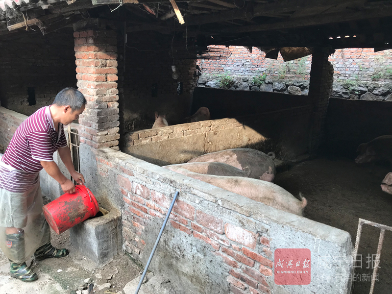 記者靠近看到,十余桶裝滿的潲水堆放在一旁,瓦房內(nèi)數(shù)十頭豬正在嗷嗷待食,一男子正在給豬準(zhǔn)備食物。