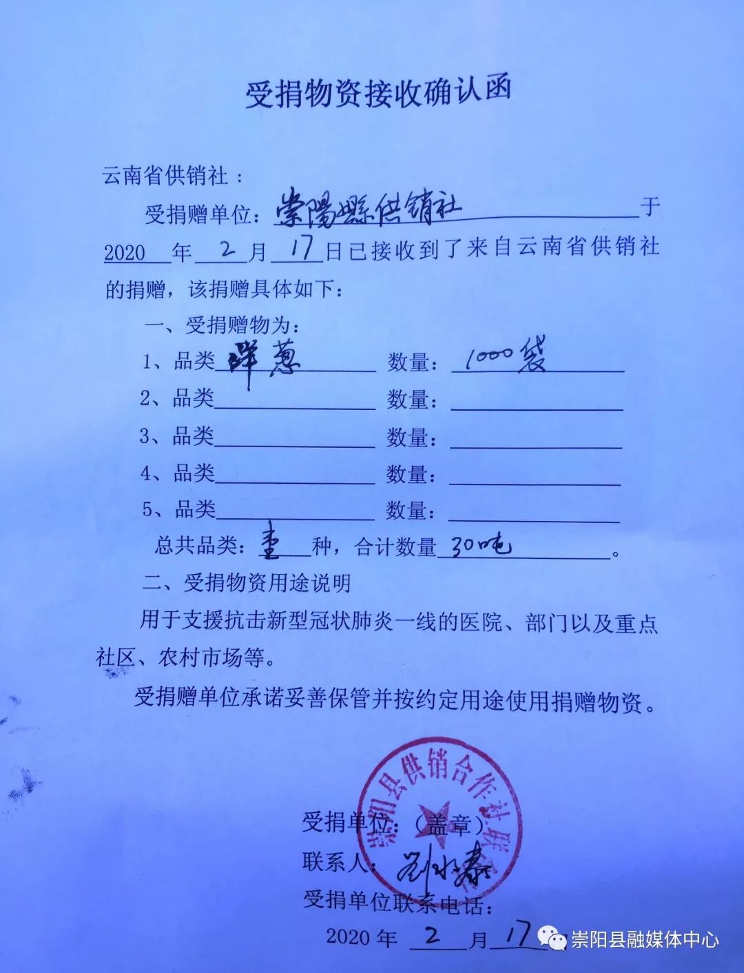 接受捐贈的縣供銷社主任劉水泰介紹,這批物資是咸寧市供銷社協(xié)調(diào),由云南省供銷社統(tǒng)一調(diào)運過來的,累計1000袋洋蔥總重達30噸,價值30萬元,這批物資將由縣防控指揮部作為戰(zhàn)略物資統(tǒng)一貯存,分批調(diào)配,用于支援抗疫一線的醫(yī)院、部門以及重點社區(qū)、農(nóng)村市場等。