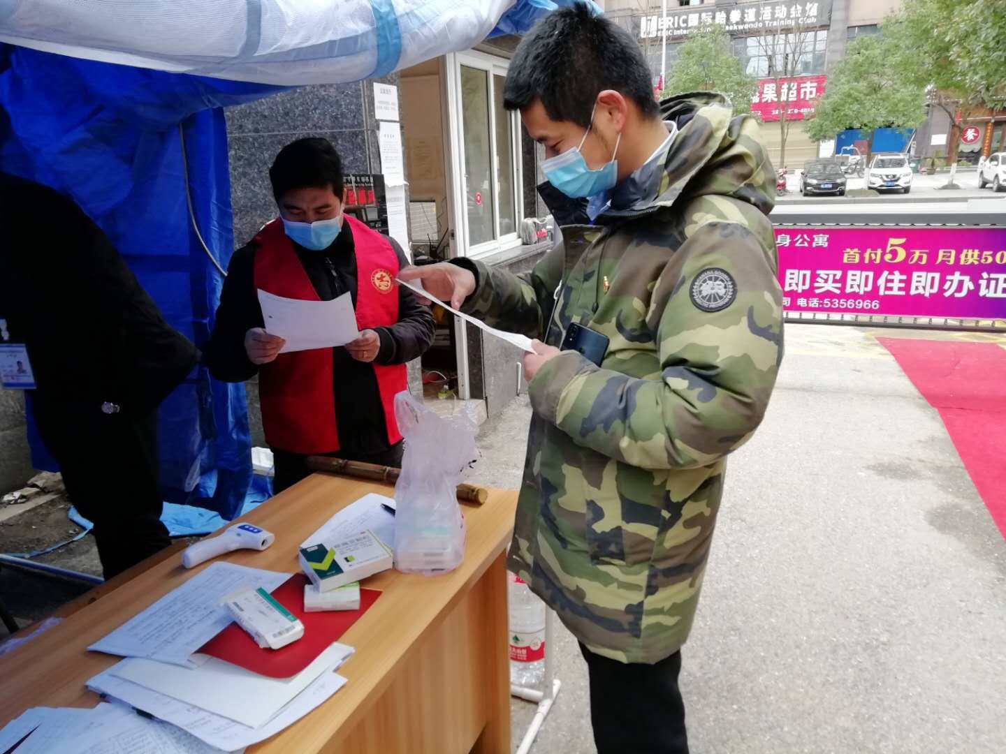 1月26日,大年初二,市新冠肺炎疫情防控指揮部調(diào)整部署,市商發(fā)集團(tuán)正式進(jìn)駐赤馬港立嘉誠(chéng)小區(qū),負(fù)責(zé)該小區(qū)疫情防控工作。經(jīng)排查,該小區(qū)共入住522戶,人口1826人,其中武漢返鄉(xiāng)人員102人,黃岡、孝感、鄂州返鄉(xiāng)6人,其他地方返鄉(xiāng)人員108人。由于剛剛接手小區(qū),對(duì)居民不熟悉,給防控工作帶來一定難度。這時(shí),畢德軍的主動(dòng)加入,讓值守人員有了更足的信心。