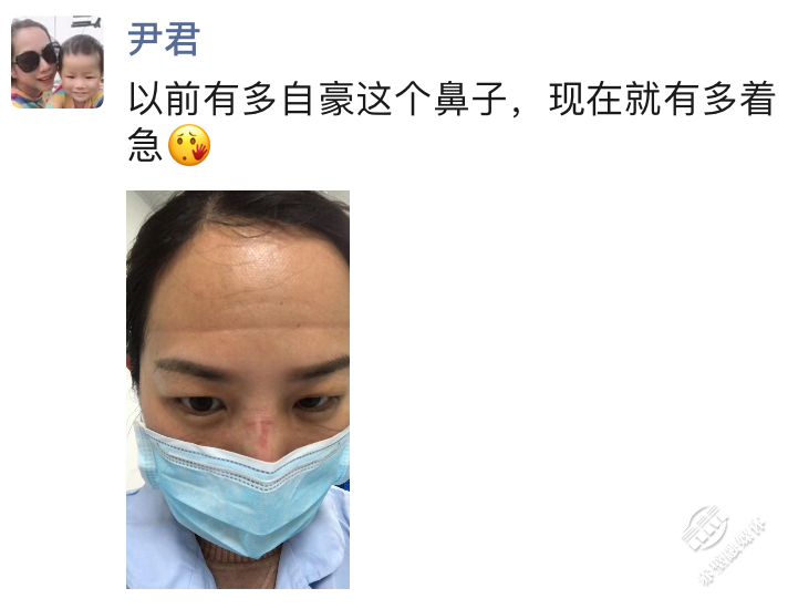 “以前有多自豪這個鼻子,現(xiàn)在就有多著急。”連續(xù)高強度工作,長時間佩戴口罩,將護(hù)士尹君的鼻梁勒磨得傷痕累累。短暫的心疼與“著急”后,她又繼續(xù)奔忙在市人民醫(yī)院隔離病區(qū)。