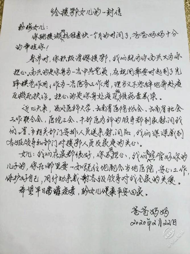 2月22日,離開家27天的楊梅收到了父親的來信。