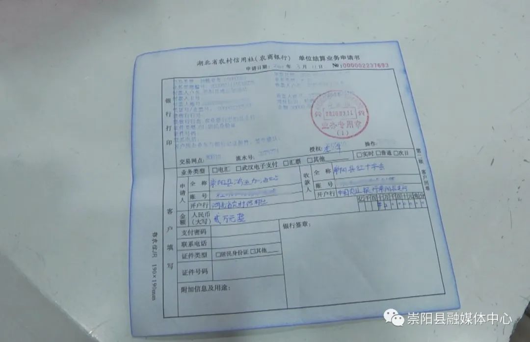 “這位居民很了不起,值得大力宣傳!”3月12日,崇陽(yáng)縣紅十字會(huì)會(huì)長(zhǎng)龐仲謀向縣融媒體中心記者報(bào)料稱。他說(shuō)的這位居民叫吳淑君,于3月11日以個(gè)人的名義向縣紅十字會(huì)捐贈(zèng)了2萬(wàn)元愛心款。