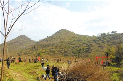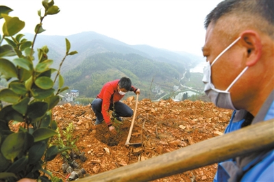3月11日,通城縣直機(jī)關(guān)單位部分干部,戴著口罩開展義務(wù)植樹活動(dòng)。