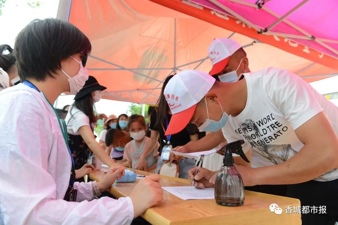 上午9點(diǎn),石門村渡槽下的廣場(chǎng)上已是一番熱鬧景象。入口處的登記臺(tái)擺著“防疫三寶 ”——體溫檢測(cè)儀、消毒酒精、口罩,所有人員通過(guò)健康測(cè)溫,登記完方可入場(chǎng)。