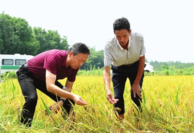 排澇搶收減損失 14日,赤壁農(nóng)業(yè)農(nóng)村局產(chǎn)業(yè)股股長錢直榮和農(nóng)藝師金剛來到車埠鎮(zhèn)梅湖村指導(dǎo)村民搶收搶種??吹睫r(nóng)技人員下到田中,周邊農(nóng)戶都圍攏過來,期待他們的技術(shù)指導(dǎo)。