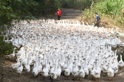 “3500多只鵝,每天光吃糧就得花1700多塊錢,5個(gè)多月來,我們已吃去了16萬多元,真的是‘被吃窮了’!”10月10日,崇陽縣沙坪鎮(zhèn)廟鋪村4組的埂場山,山谷里回蕩著群鵝嬉戲的“嘎嘎”聲,55歲的養(yǎng)鵝人劉金漢和他的妻子張金書卻滿是愁言。