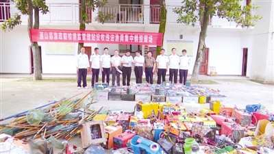 合力“嚴管”形成高壓。7月中旬以來,組織執(zhí)法行動211次,出動執(zhí)法船艇和車輛230臺次,參與執(zhí)法人員1031人次,現場查獲并銷毀各類非法漁具632套、違法電捕設備21臺(套),查扣非法捕撈漁船2 艘,行政處罰54人,行政罰款1.4萬元,批評教育300余人,刑事立案1起,形成了有效震懾。