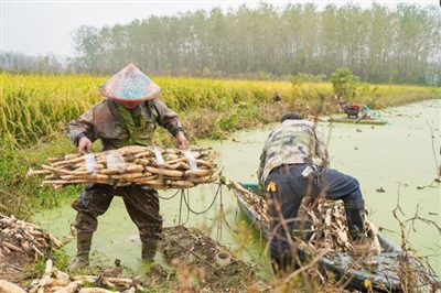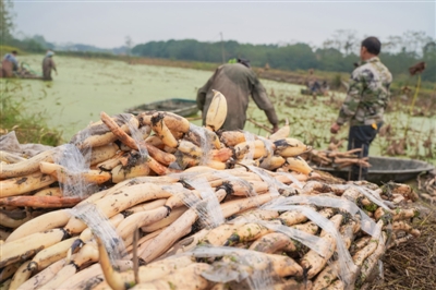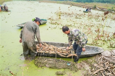 10月26日,嘉魚縣陸溪鎮(zhèn)界石村鴨兒湖養(yǎng)殖專業(yè)合作社里,負(fù)責(zé)人龔木前正和工人們一起忙著挖藕、稱重、清洗、包裝。龔木前是一名退役軍人,2009年,龔木前從部隊(duì)轉(zhuǎn)業(yè)后回鄉(xiāng)創(chuàng)業(yè),承包了村里50畝荒湖種野藕。經(jīng)過(guò)幾年時(shí)間的發(fā)展,他成立了農(nóng)業(yè)合作社,把藕塘面積擴(kuò)大到300多畝。近些年,通過(guò)他的努力,他家的野藕通過(guò)電商遠(yuǎn)銷全國(guó)各地,高峰期時(shí),每天可以接到200余張訂單。 通訊員 耿海軍 杜瑞 攝