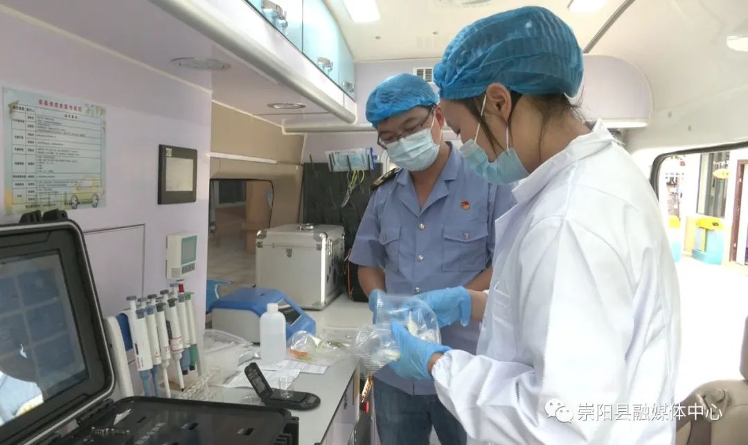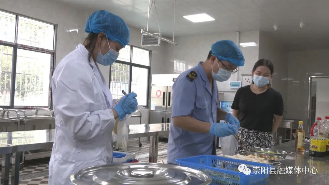 在崇陽(yáng)縣第二幼兒園,檢測(cè)人員正在為采樣做準(zhǔn)備,在將專業(yè)儀器、設(shè)備調(diào)試好后,對(duì)校園食堂里已經(jīng)過消毒的餐具進(jìn)行拭子采樣,隨后將采樣的拭子放入檢測(cè)儀器中。