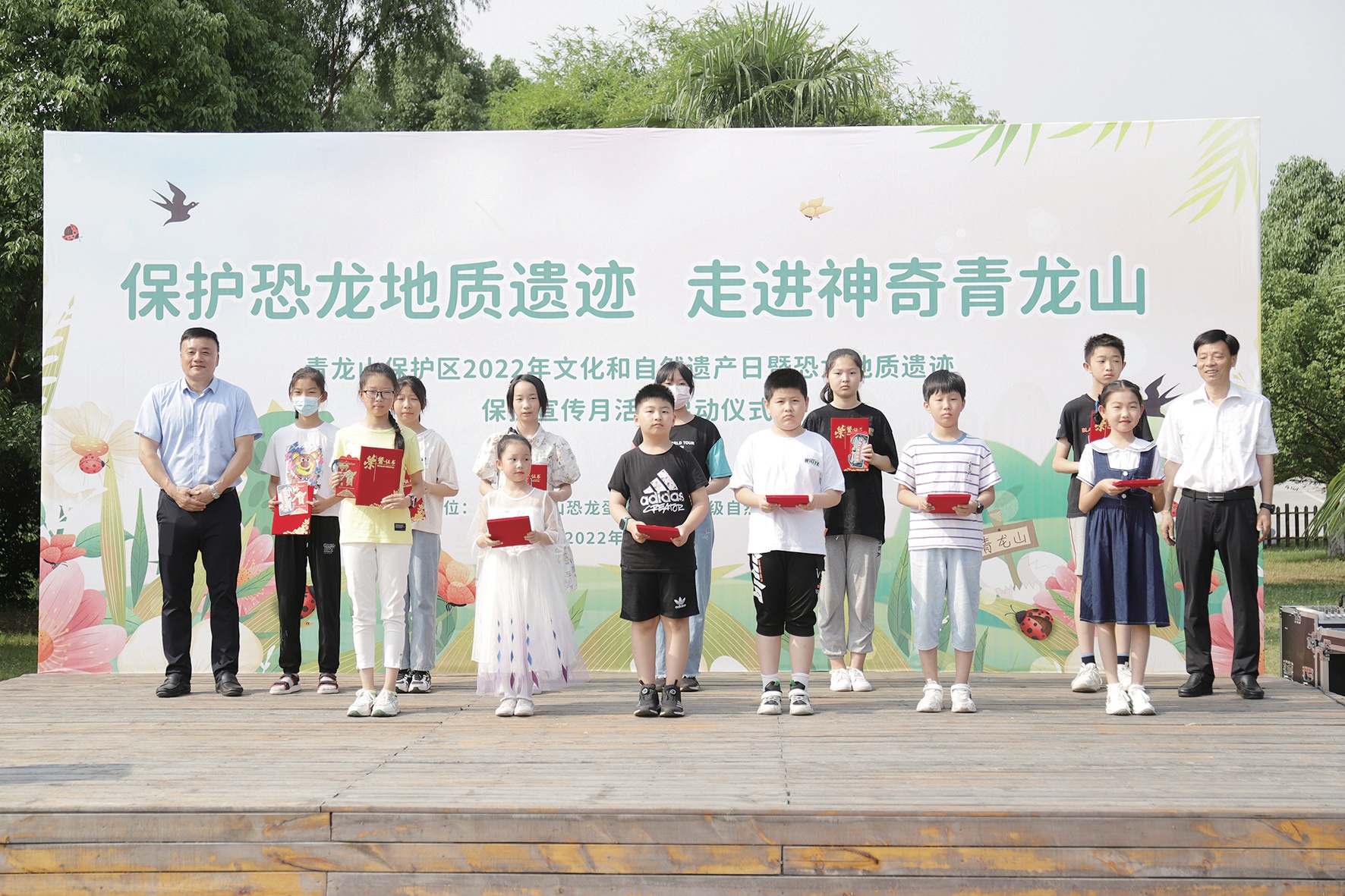 本報訊 6月11日是我國第6個文化和自然遺產(chǎn)日。為了更好保護青龍山恐龍蛋化石群這一世屬罕見的自然遺產(chǎn),喚醒大家珍愛地球、保護環(huán)境的意識,當日,湖北青龍山管理局在青龍山地質(zhì)公園舉行了2022年文化和自然遺產(chǎn)日暨恐龍地質(zhì)遺跡保護宣傳月活動啟動儀式。來自十堰日報社小記者團、媽媽幫社群的200余位學(xué)生、家長朋友在現(xiàn)場參加活動。