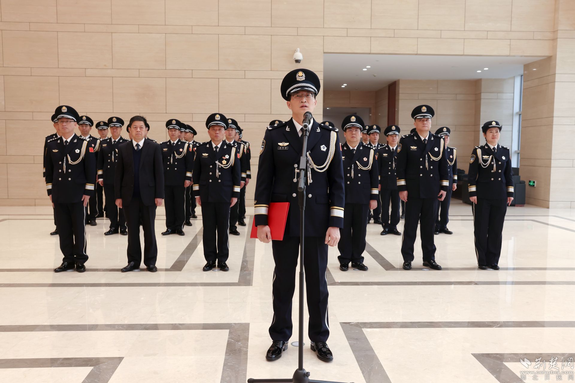 公安局黨委副書記、副局長(zhǎng)牟波為榮記集體二等功代表頒獎(jiǎng)。通訊員 供圖