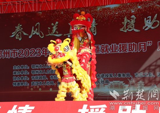 與此同時,暖場表演鼓樂齊鳴、熱火朝天,歌聲聲動梁塵,舞獅活靈活現(xiàn)、精彩絕倫,引得觀者連連叫好?,F(xiàn)場一片歡快熱鬧的場景,好似寓意著每一位求職者滿載而歸。