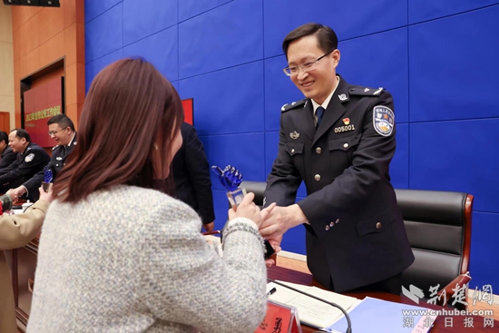 為優(yōu)秀民警家屬頒獎。秦浩 攝