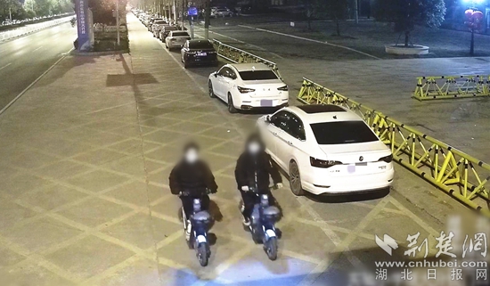 鳳凰派出所隨即聯(lián)合市局刑偵支隊(duì)依托“情指勤輿”一體化實(shí)戰(zhàn)化運(yùn)行機(jī)制,根據(jù)基站自動(dòng)報(bào)警時(shí)段,重點(diǎn)對(duì)其附近路段的公共視頻資料進(jìn)行研判,果然發(fā)現(xiàn)了疑點(diǎn):由于報(bào)警時(shí)間段為凌晨,周邊道路幾乎沒有人,所以兩名騎著共享自行車的戴口罩男子引起了民警的注意。