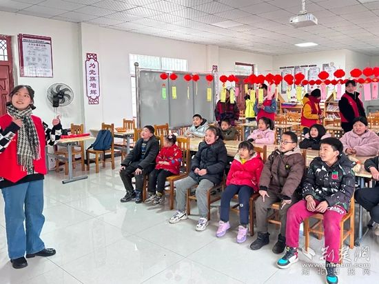 大二護(hù)理專業(yè)的丁佳慧在2021年就加入了學(xué)校的“星火支教”團(tuán)隊,寒假回到家鄉(xiāng)麻城后,她組建“閱而有味讀書會”。在春節(jié)期間,聯(lián)合麻城市公益組織——青力締造服務(wù)隊,一起走進(jìn)麻城市三河口鎮(zhèn)碧楓沖村委會留守兒童之家,為30多個小朋友留守的兒童送去溫暖禮包,陪他們做游戲,并為他們帶去了別開生面的花燈制作課。