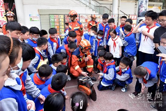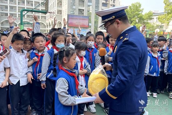 原來,當天黃石港區(qū)消防救援大隊在廣場路小學開展了一場別開生面的消防安全“進校園”疏散演練活動。