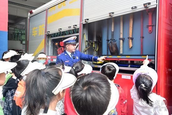 在百花路消防救援站營(yíng)區(qū),小畫(huà)家們?cè)谙绬T的帶領(lǐng)下參觀了消防車(chē)輛、器材裝備。消防員耐心地為小畫(huà)家們講解了消防安全知識(shí),詳細(xì)介紹了各個(gè)消防車(chē)輛裝備的名稱(chēng)、用途以及在滅火救援戰(zhàn)斗中發(fā)揮的重要作用。