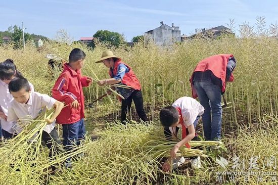 荊楚網(wǎng)(湖北日?qǐng)?bào)網(wǎng))訊(通訊員劉志勇)“田間少閑月,五月人倍忙”。轉(zhuǎn)眼間,紅安縣永河小學(xué)勞動(dòng)實(shí)踐基地里的油菜進(jìn)入收獲期,5月12日,永河小學(xué)各班師生趁著晴好天氣搶收油菜,現(xiàn)場(chǎng)一派繁忙的豐收景象。