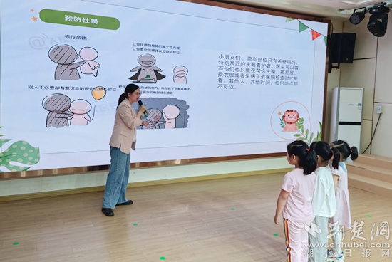 活動中,杜航用一些發(fā)生在身邊鮮活、真實(shí)的典型事例,通俗易懂、深入淺出地講解了《未成年人保護(hù)法》中“家庭保護(hù)”“學(xué)校保護(hù)”“社會保護(hù)”和“司法保護(hù)”的相關(guān)內(nèi)容。用幼兒容易理解的小視頻和故事進(jìn)行防性侵、防拐騙、防溺水等方面的安全教育,機(jī)智的問答互動,讓孩子們在歡聲笑語中學(xué)到了知識,懂得了如何保護(hù)自己。
